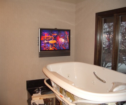 This is a flat screen television that is being installed in a master bathroom